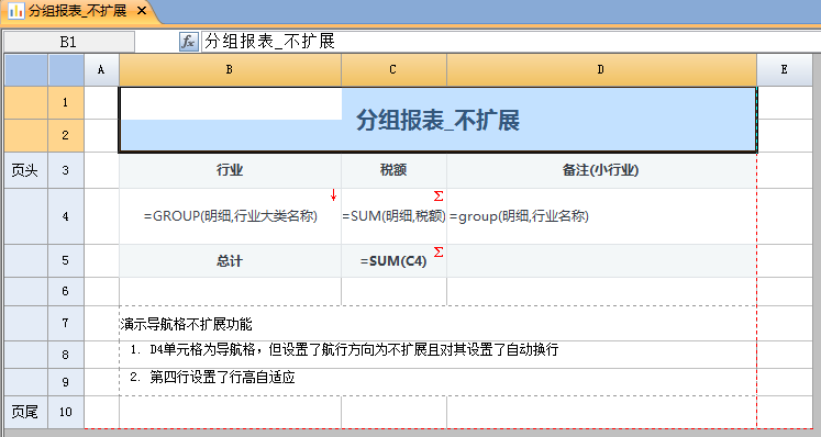 模板地址:应用空间\lczReport\初级教程\分组报表_不扩展.hte