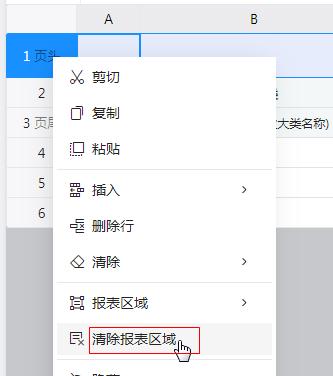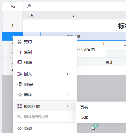 右键点击已经属于某个区域的行头,出现弹出菜单: