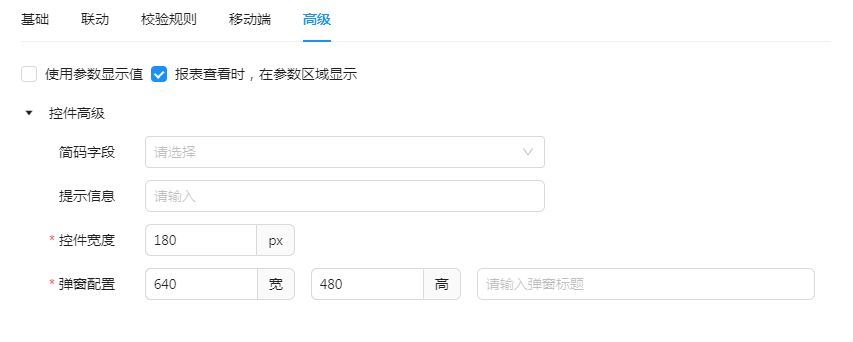 输入框控件可配置控件默认值、控件宽度等,如下图: