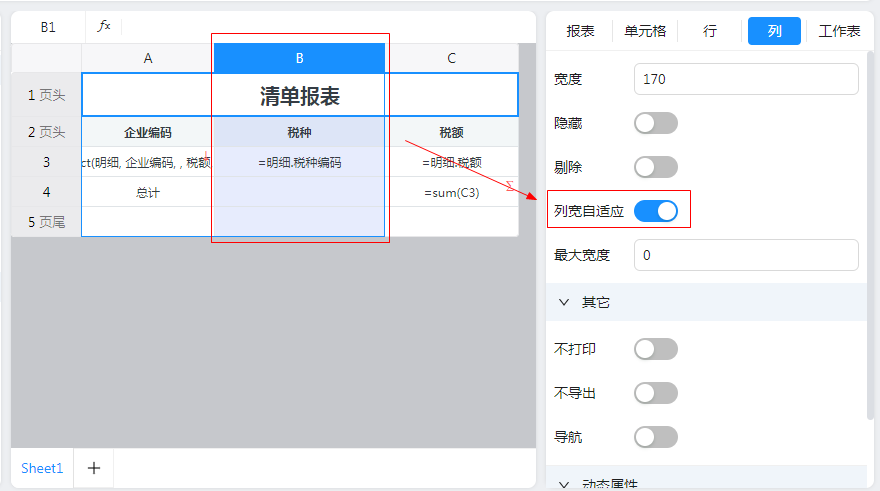 2)B列设置为“列宽自适应”,如下图: