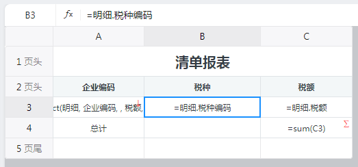 在已有PC端报表“清单报表”进行如下设置: