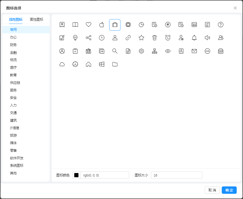 系统图标可设置图标颜色和大小: