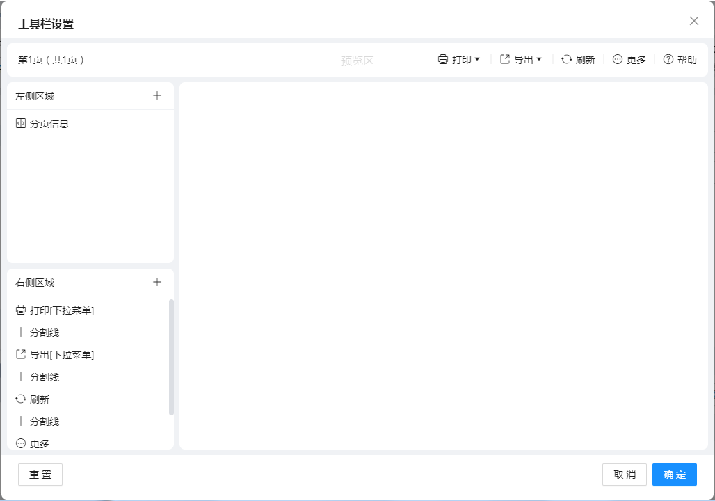 该工具栏内的功能按钮是在报表设计时进行配置的,用以改变工具栏的默认形态。