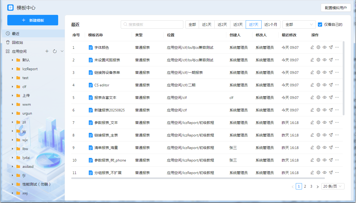 创建的所有模板均在“应用空间”中,支持创建文件夹进行分类管理。